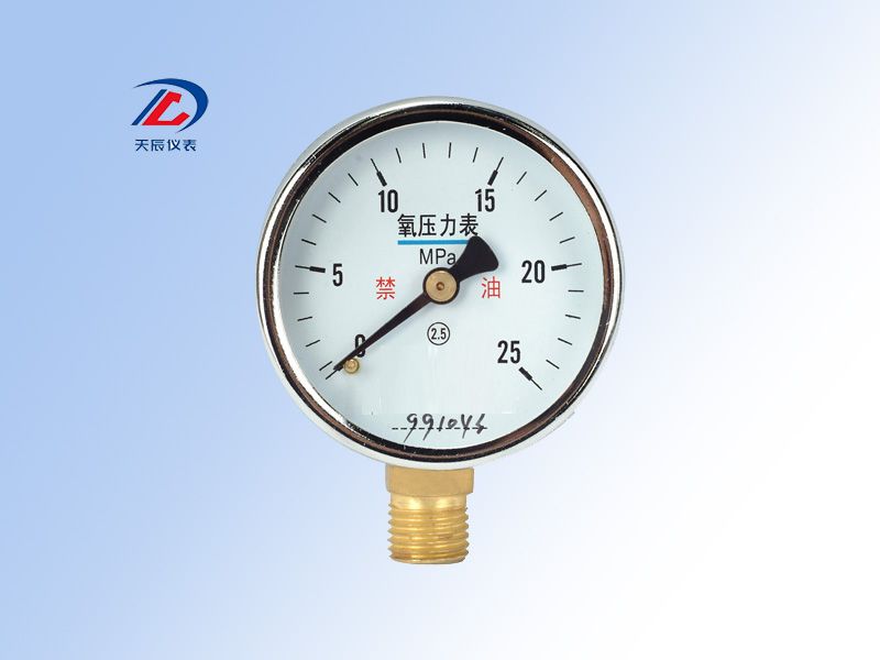 河南天辰測控儀表自主研發的氧氣壓力表儀表適用測量氧氣介質的壓力。嚴禁接觸油脂類物質。...